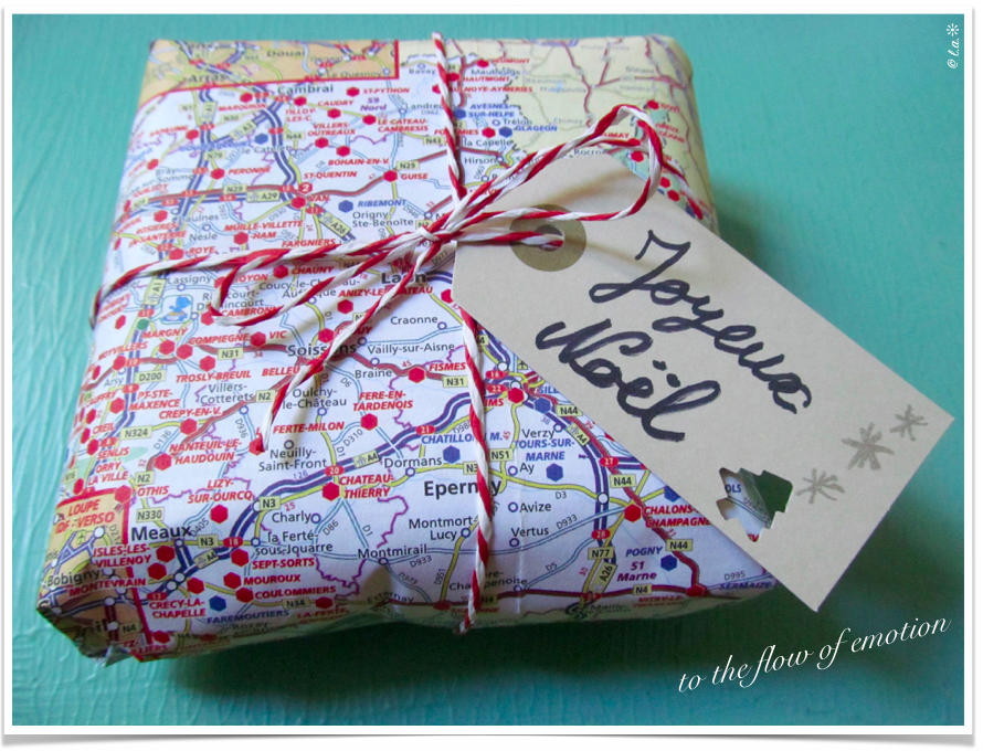 Des anciens journaux, anciens jolis calendriers, anciennes cartes routières qui ne sont plus adaptées aux réseaux actuels + des rubans et morceaux de laine ou de ficelle. Sinon, vous pouvez utiliser des chutes de tissu pour remplacer le papier. Cela donne un très joli rendu. Et cela est tendance, gratuit et zéro conso. 😉