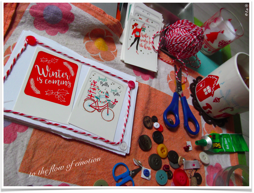 Pour ceux qui le préfèrent et qui ont le matériel pour, quelques impressions d’images choisies peuvent aussi être une option. Je vous conseille de réduire les images en format vignette afin de ne faire qu’une feuille d’impression qui pourra servir à créer d’autres jolies cartes 😉